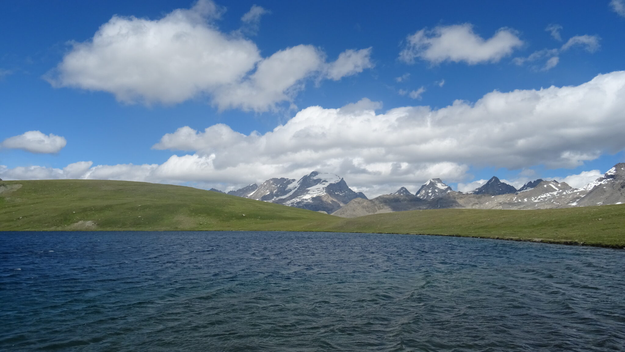 Via een prachtig pad en het schitterend gelegen Lago di Beauregard dalen we af naar Rifugio Bezzi.