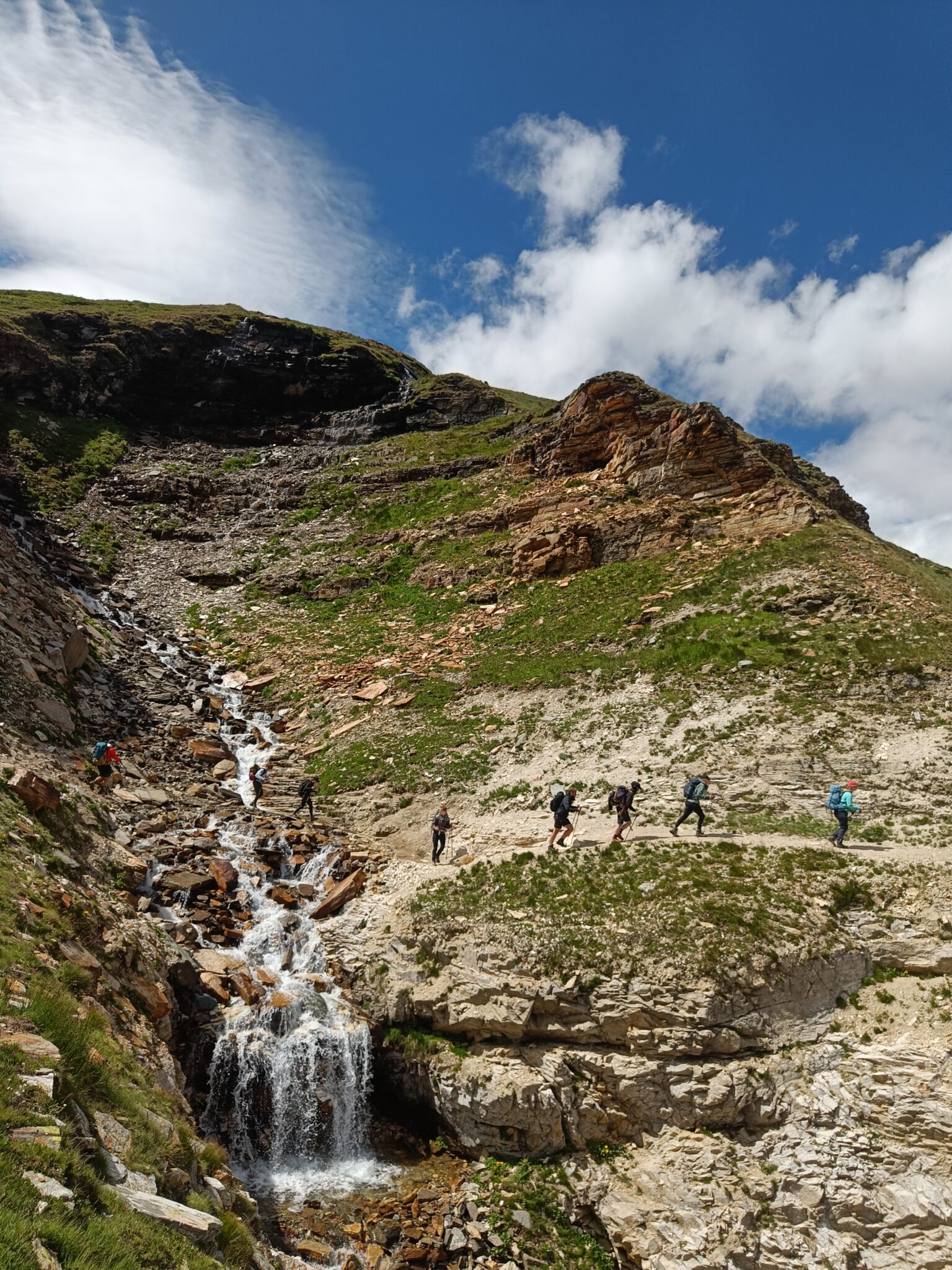 Op dag 6 is er na de afdaling een korte passage in vertrek- en eindpunt Pont waar een deel van de bagage kan achterblijven en vers gerief, alsook klimgerief wordt meegenomen.